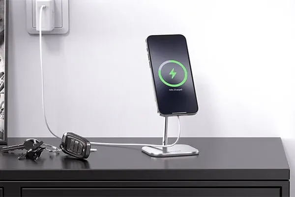 מעמד אלומיניום יוקרתי לטעינה אלחוטית – תואם Apple MagSafe 25W