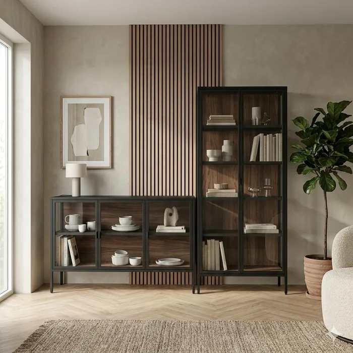 ויטרינה +מזנון מעוצבים בגוון שחור עם גב אגוז