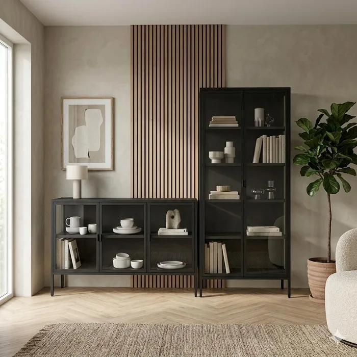 ויטרינה +מזנון מעוצבים בגוון שחור עם גב אגוז