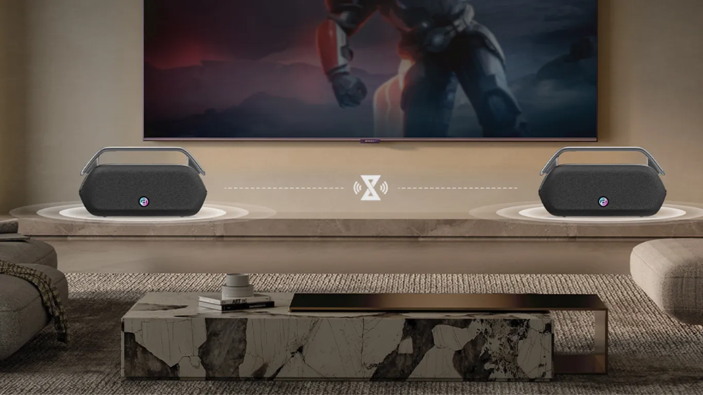 חיבור TWS מאפשר לחבר שני רמקולים מדגם BUGANi Boost Max יחד לקבלת סאונד סטריאו.