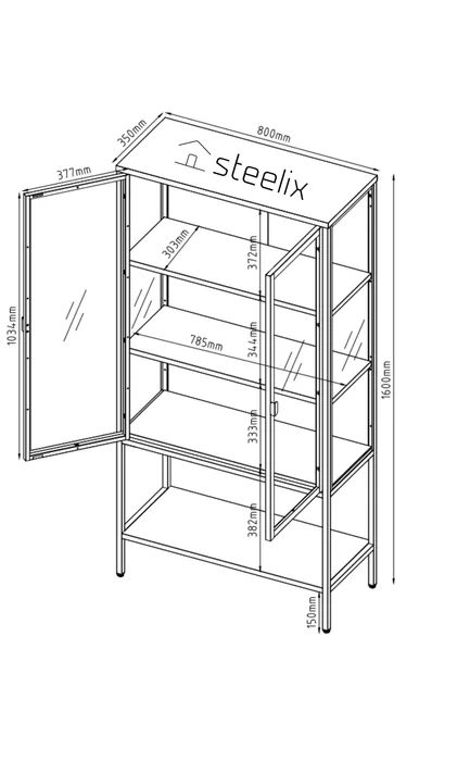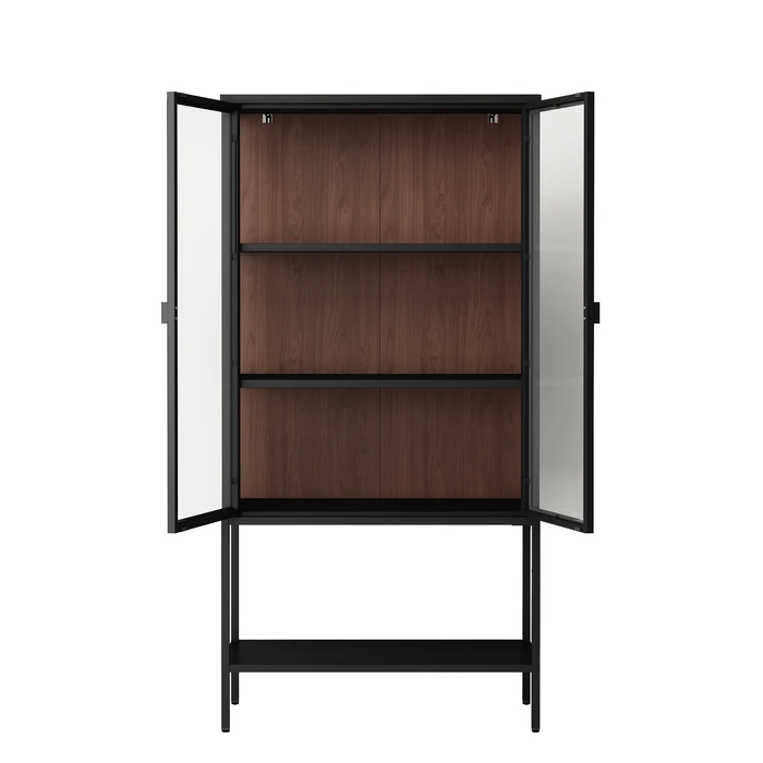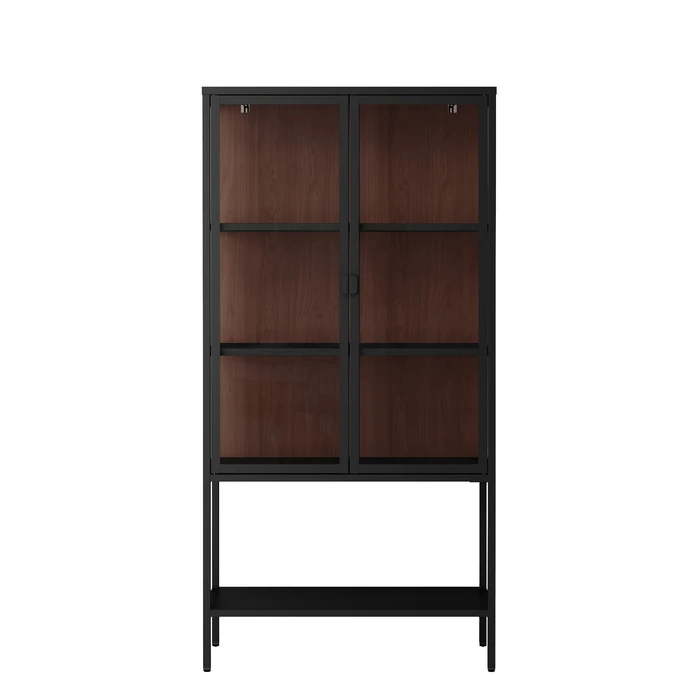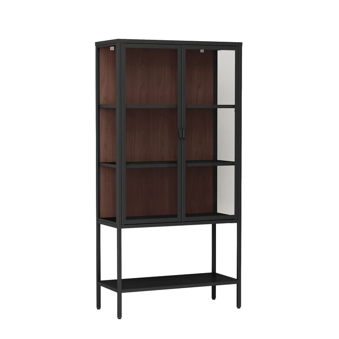 ויטרינת מתכת עם דלתות זכוכית וגב גוון עץ – STEELIX