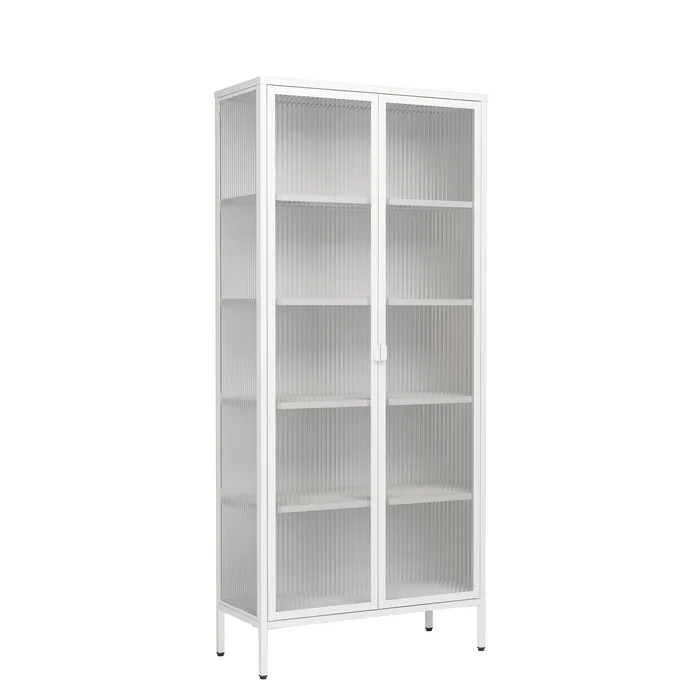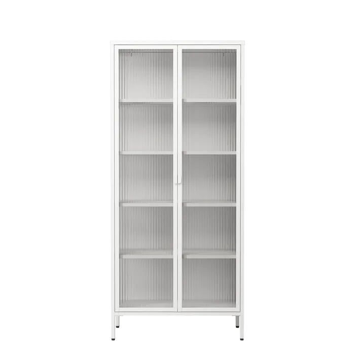 ויטרינה מתכת מודרנית בעיצוב תעשייתי, עם שילוב אלגנטי של זכוכית- Ribbled glass