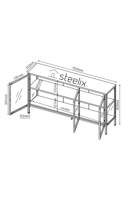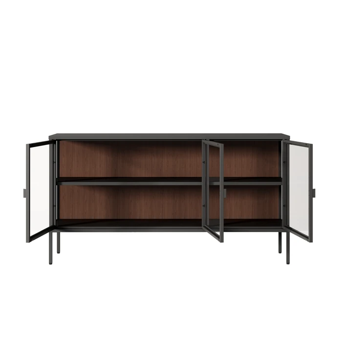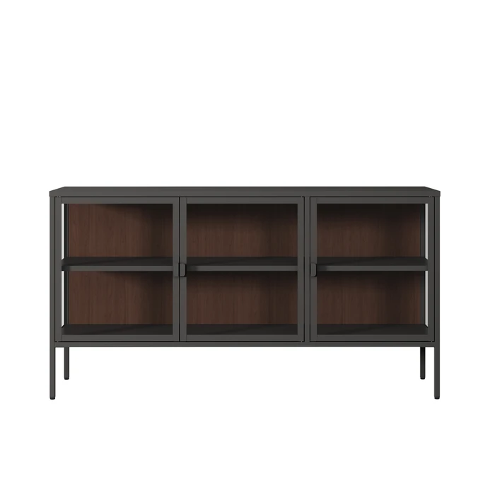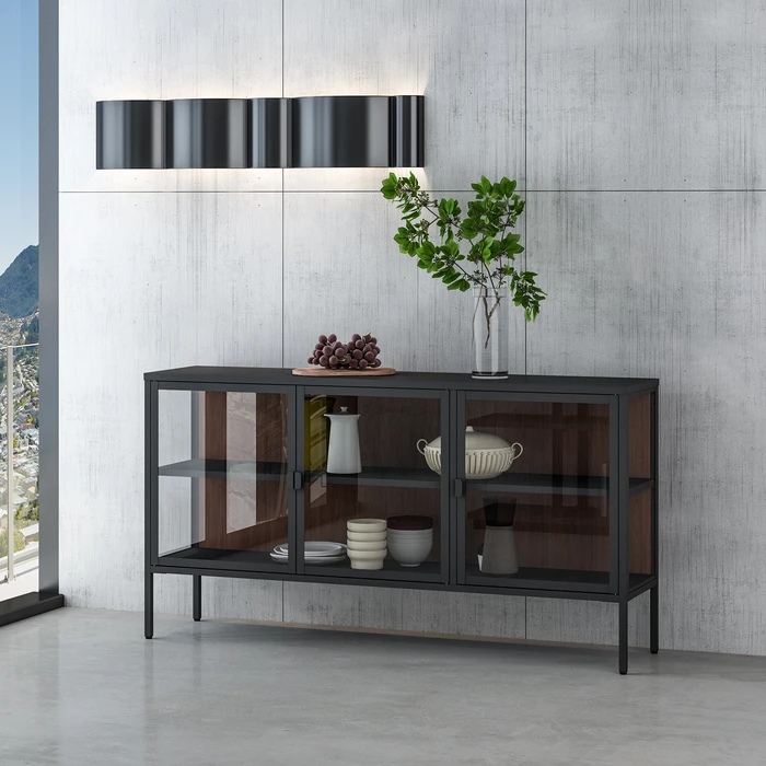 מזנון ויטרינה מתכת עם דלתות זכוכית וגב עץ – STEELIX